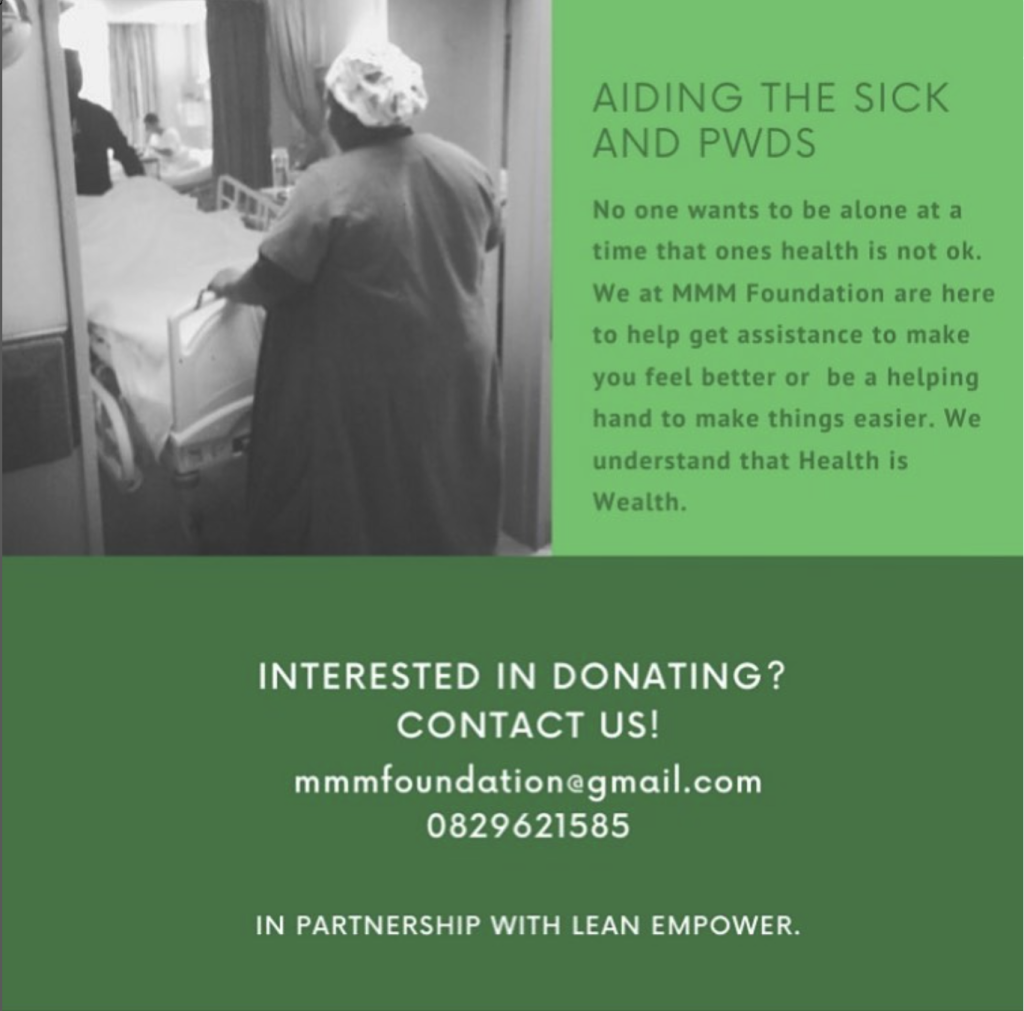 With the loving support of his mother, Dombo Maepa, and their family, the MMM Foundation was established to help Mphela fulfil his purpose and continue doing what he loves most, helping those in need.
